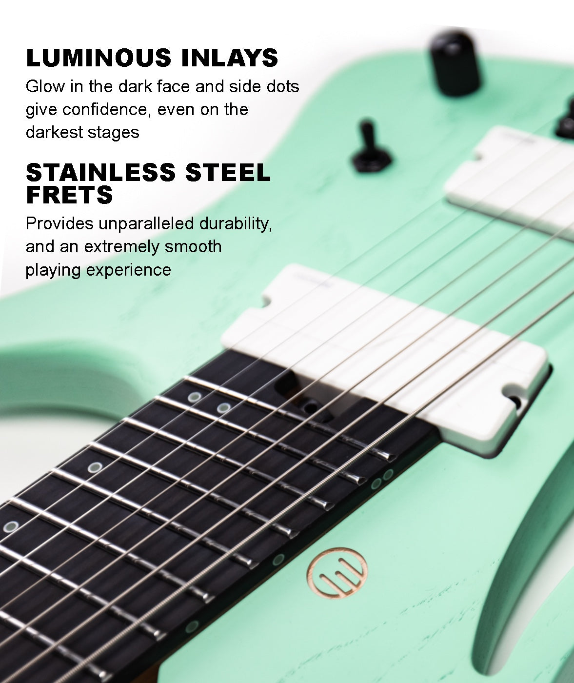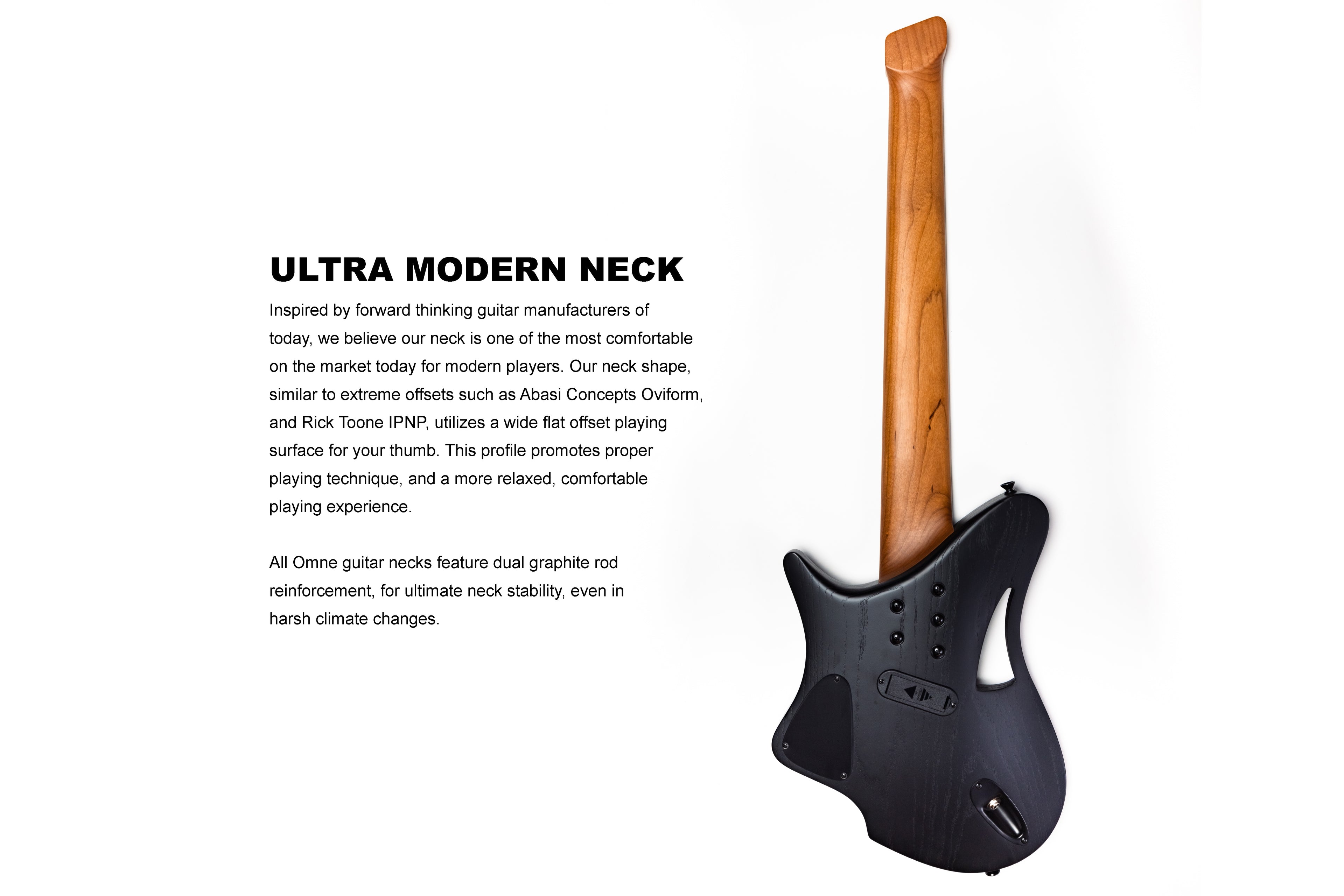 Omne, derived from the Latin word "Omnis," meaning "everything" or "all-encompassing," embodies our vision. Our mission began with a desire to bring together the best modern ergonomic features discovered over the years, enhancing them with our own innovations to craft some of the most comfortable and forward-thinking instruments available today. From headless construction to multi-scale design, each element is meticulously refined to provide a unique playing experience that elevates your musical journey to new heights.
